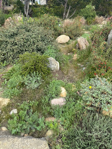 This diverse planting of natives is sustained almost entirely throughout the whole year by the deep soaks achieved from the functional swale during winter rains.