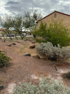Here’s a functional swale ending in a big soak basin, located in a desert garden where summer monsoons often cause flash floods. Curley Conference Center, Ajo, Arizona.